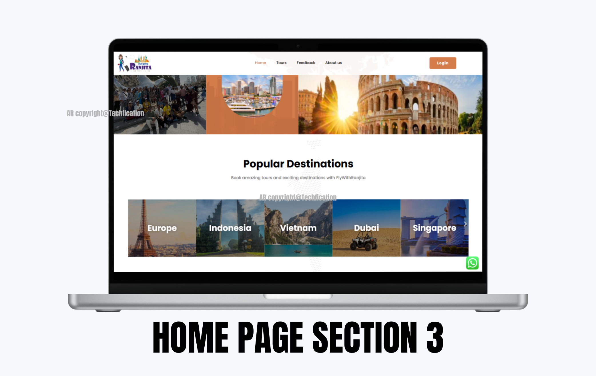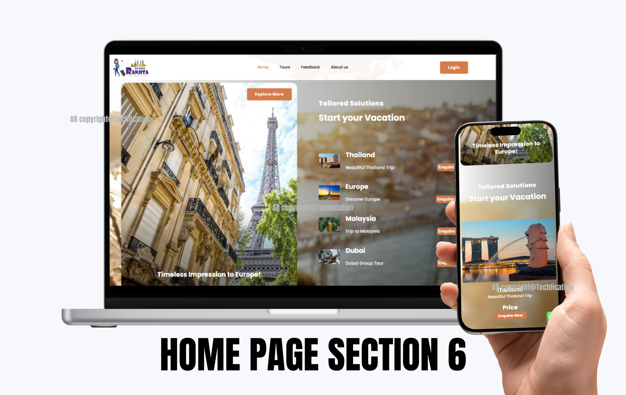 The project, developed by Techfication, was a travel and trip-booking website built with the goal of offering seamless tour discovery and hassle-free trip bookings. The platform was designed to highlight travel itineraries, showcase destination experiences, and simplify the booking process for customers.